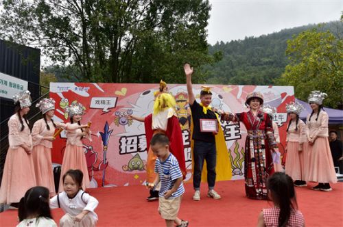 当天的活动现场,反映当地传统农耕生活场景的土家族摆手舞吸引了数百当地群众及中外游客参与其中,气氛热闹而喜庆;随后,不少游客又自告奋勇地参与到“海选龙王”的游戏中,通过趣味问答与才艺比拼,竞逐“龙王”表演资格,当选者在欢歌热舞中登上了“龙王宝座“;“龙王巡游快闪秀”更是将现场气氛推上高潮,竞聘上岗的“龙王”和“虾兵蟹将”在景区各处巡游,不时和其他游客激情互动;在遍布黄龙洞生态广场的各式擂台前,游客可以通过挑战掷骰子、搬木头等游戏赢取“龙票”,进而换取丰富的奖品……这些有趣的互动游戏不仅增加了游客的参与感,更是让他们沉浸在独特的旅游体验之中。