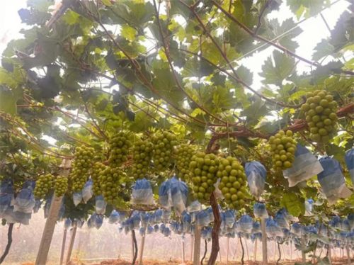 种植基地负责人蔡洪源讲到,今年有幸得到毕节市林业科学研究所曾庆良老师,贵阳学院陈海江博士、李勇博士、吴文能博士多次亲临基地指导,大量使用土著微生物菌肥进行葡萄根部施肥和叶面喷洒,葡萄长势良好,无明显病虫害发生,特别是使用土著微生物益生菌喷洒的葡萄能提前成熟,果形、颜色、口感极好,清脆香甜,吸引大量客商前来采购。
