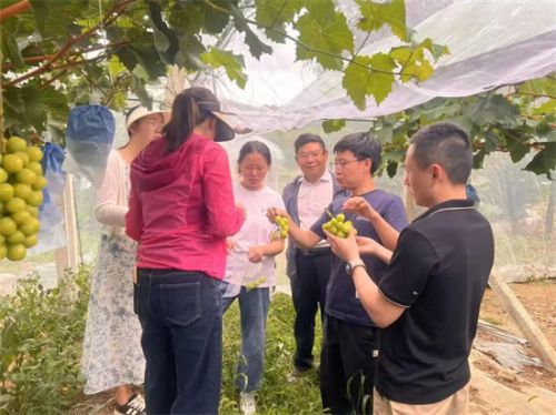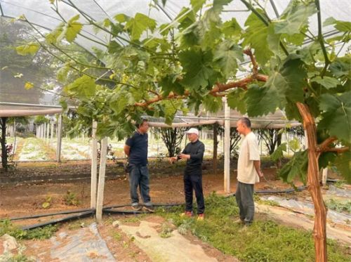 省科技特派员曾庆良就如何在此基地推进绿色高质量技术发展作了讲解,具体方法,一是使用土著微生物益生菌发酵畜禽粪便、农作物秸秆等原料制成微生物菌肥,代替化肥在葡萄根部施用;二是使用土著微生物益生菌种植酵素作为葡萄叶面肥喷洒,既能促进葡萄营养生长,又能抑制病虫害,同时减少化学农药使用;三是使用轻便高效割草机进行机械除草,远离除草剂,实现绿色生态种植模式,达到低农残、高品质、高增产的效果。