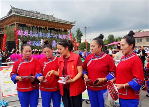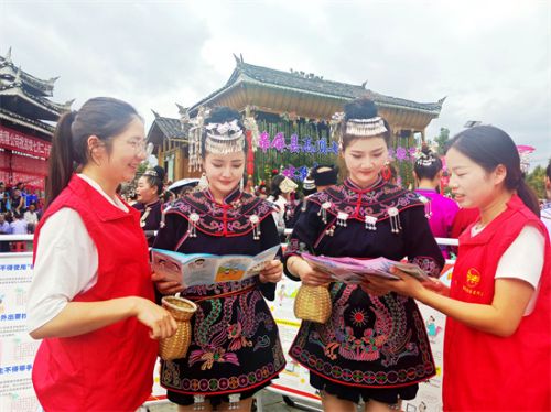 9月民俗节日密集,成为普法重要窗口。9月11日,平秋镇高坝村“七月二十赶歌节”举办,侗族同胞身着盛装欢聚,游客慕名而来。县委政法委、县司法局联动当地部门,推出“民俗+法治”模式:工作人员围绕《民法典》《未成年人保护法》《反有组织犯罪法》,通过“发物资+讲案例”普法——发放法律手册及印普法知识的扇子、围腰,用汉语+侗语“双语”讲解婚姻家庭、邻里矛盾案例,打破语言与认知壁垒,让法治精神随歌声传递。