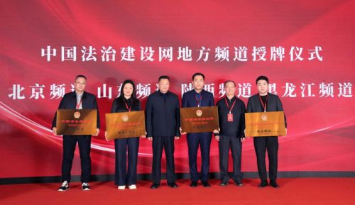 仪式上还举行频道授牌环节。韩亨林与段元祥(中共中央政法委员会原办公室副主任)共同登台,为山东、黑龙江、陕西、北京四个省级频道授牌。这一环节标志着中国法治建设网全国网络布局的实质性启动,为构建覆盖广泛的法治文化传播体系奠定了坚实基础。