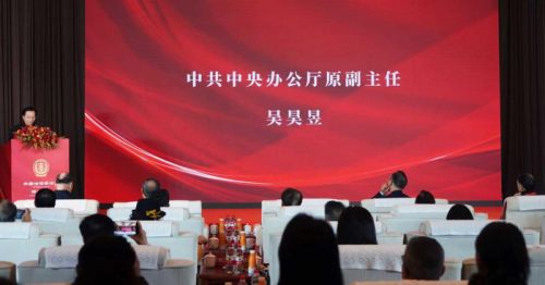 中共中央办公厅原副主任吴昊昱作为宣传战线老同志发表讲话,语重心长地提出四点期望:要高举旗帜,做法治思想的传播者;要守正创新,做法治精神的转化者;要聚焦青少年,做法治新人的培育者;要记录时代,做法治进程的见证者。
